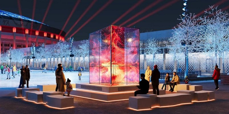 "Центральную часть катка и боковые аллеи объединят с помощью архитектурно-художественной подсветки, звука и инсталляций. Например, центральным элементом площади со стороны набережной станет "Куб энергии" — интерактивная инсталляция, оснащенная аудиосистемой. На одной из аллей будет располагаться мультимедийная пространственная инсталляция "Таинственный лес". В центре катка установят 16-метровую ель с новогодним декором", — сообщается на портале