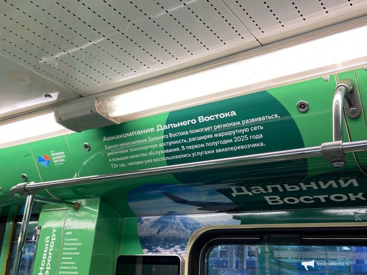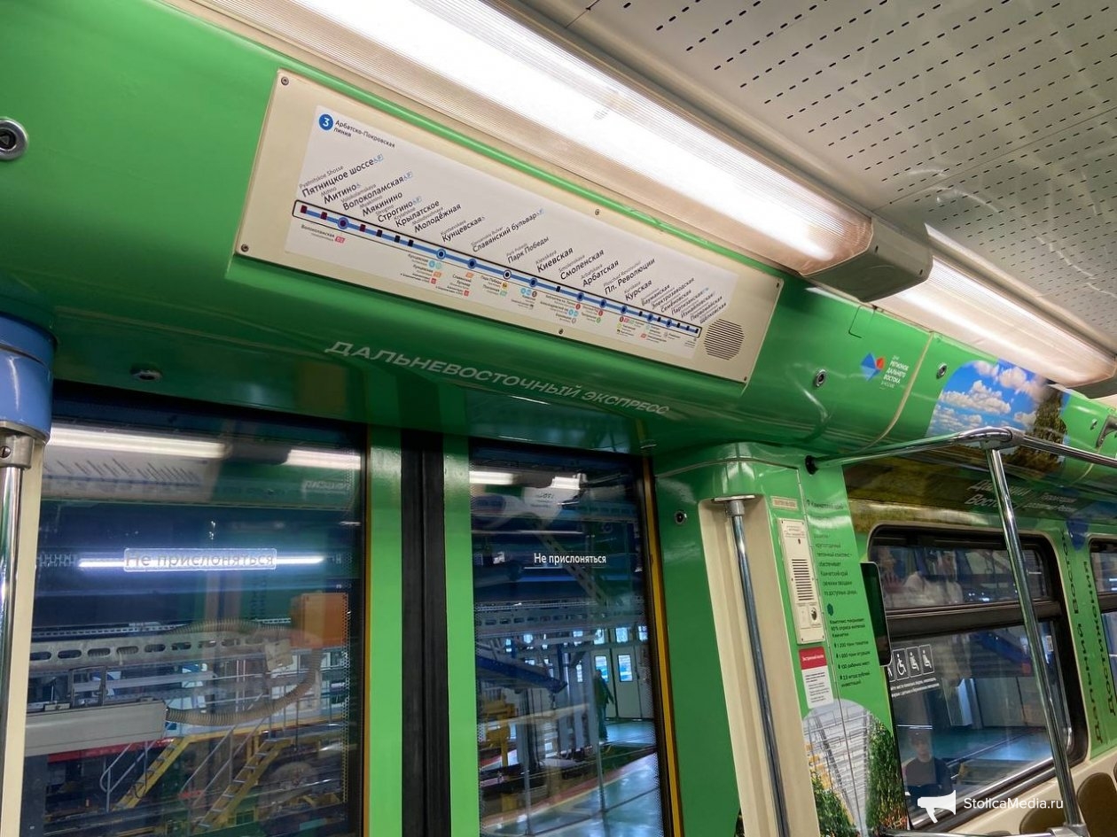 StolicaMedia, 1 ноября. Новый тематический состав, посвященный Дальнему Востоку, начал курсировать на Арбатско-Покровской линии московского метро. Восьмой по счету "Дальневосточный экспресс" знакомит пассажиров с природными достопримечательностями, культурой и экономическим потенциалом региона. Об этом сообщает ИА StolicaMedia со ссылкой на mos.ru.