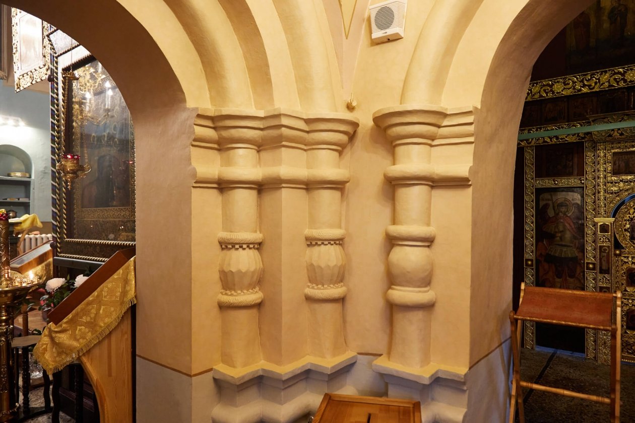 Большой объем работ выполнили и внутри церкви. В подвале укрепили кладку и своды Монье, на втором ярусе восстановили монументальную живопись XIX века. Изображения святых и библейские сюжеты вновь стали яркими и выразительными. Старинные мозаичные полы конца XIX — начала XX века были очищены и приведены в порядок.