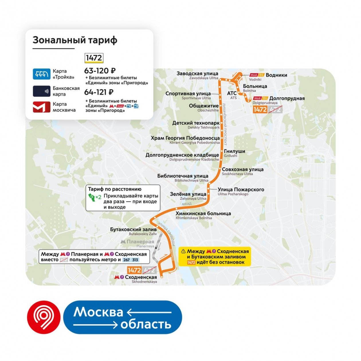 "20 декабря запустим еще 2 маршрута в ближайший пригород, они заменят областного перевозчика. <…> Транспорт поедет от станций метро "Беломорская" и "Сходненская" в городские округа Химки и Долгопрудный", — сказал он.