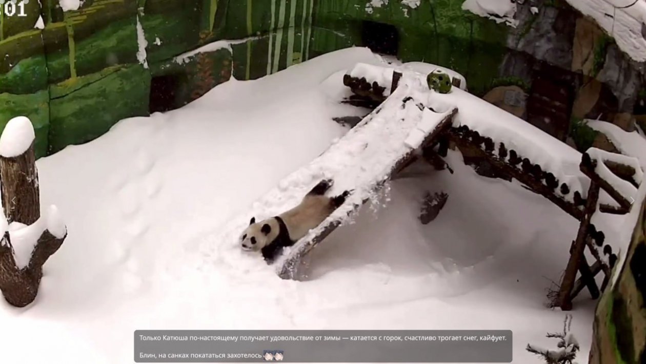Зимние развлечения, судя по всему, пришлись панде по душе. Снег, горки и неспешные скатывания стали для Катюши настоящей игрой и еще одним поводом порадовать посетителей.