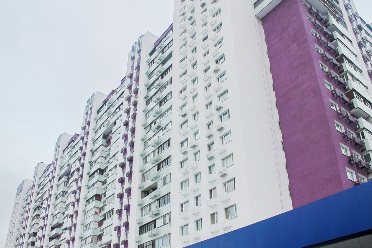 Работы начались с тщательной подготовки поверхностей. Затем делали грунтовку и монтаж кронштейнов для климатического оборудования. После укладки утеплителя из минеральной ваты конструкцию оштукатурили, укрепили стекловолоконной сеткой и нанесли финишное декоративное покрытие. Фасад окрасили в сочетание цветов "фиолетово-коричневая земля" и "сигнальный белый". Помимо основного фасада, установлены экраны на балконах, обновлены отмостка и цоколь, а в подъездах заменены окна на современные стеклопакеты.