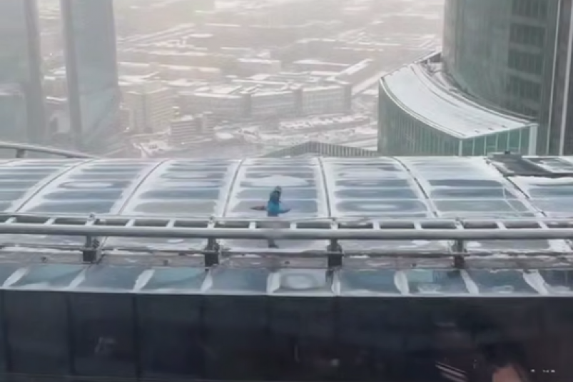 StolicaMedia, 22 января. В социальных сетях распространяется видео, где мужчина прогуливается по крыше одного из высотных зданий комплекса "Москва-Сити" без страховочного оборудования. В руках у него лопата, сообщает StolicaMedia.