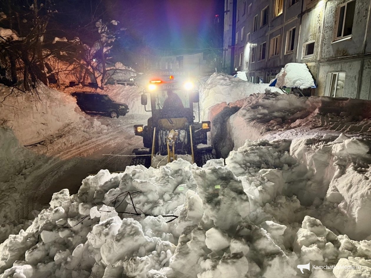 Обычный двор в Петропавловске-Камчатском. Последний раз снег убирали в середине декабря. После всех циклонов проезд полностью заблокирован уже две недели. Невозможно вывезти мусор, проехать пожарным и скорой, подвести товары в окрестные магазины. Попытка погрузчика пробиться в соседний двор закончилась крахом — спецтехника чуть не свалилась в яму со свежеоткопанным автомобилем, а потом превратила въезд в площадку для могула с трамплинами и ухабами.