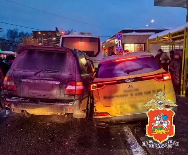 В подмосковном Солнечногорске произошло ДТП с участием автомобиля такси и микроавтобуса, травмы получили три человека. По предварительной информации, на улице Крестьянская автомобиль Toyota врезался в такси, которое стояло в зоне, где пассажиры садятся на автобус. После удара такси продолжило движение по инерции и сбило пешехода. Toyota врезалась в стоявший на остановке микроавтобус.