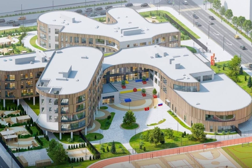 В дошкольном отделении запланированы 20 групп, кабинеты для развивающих и коррекционных занятий, а также музыкальные и физкультурные залы. На прилегающей территории создадут крупное спортивное ядро с площадками для командных игр, воркаут-зонами, беговой дорожкой, местами для отдыха и проведения массовых мероприятий.