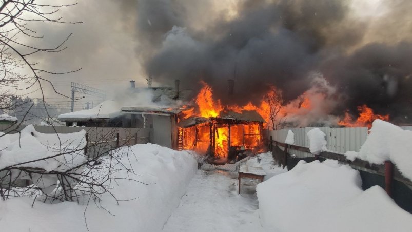 К моменту приезда спастелей у здания сильно горела крыша. Пожарным удалось спасти от огня женщину с ограниченными возможностями здоровья и её домашних животных.