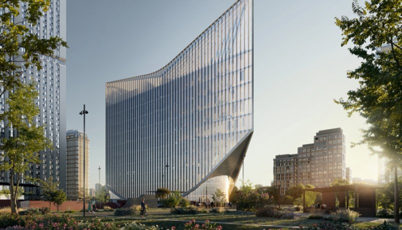 Рядом с ним располагаются станции "Мичуринский проспект" Солнцевской и Большой кольцевой линий (БКЛ) метро, а также "Аминьевская" БКЛ и четвертого Московского центрального диаметра. Архитектурная форма здания будет треугольной, напоминающей парус. В середине разместится "пояс" из алюминиевых кассет сложной формы. Для отделки фасада застройщик намерен использовать крупноформатные структурные и моллированные стеклянные панели.