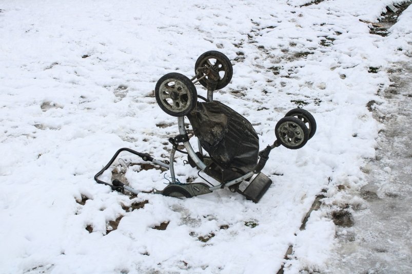 Информация о происшествии ранее появилась в средствах массовой информации. Сообщается, что ледяная масса сорвалась с крыши здания и упала на коляску, в которой находился малолетний ребенок. Пострадавшему понадобилась медицинская помощь.