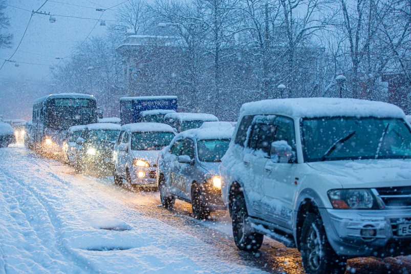 Москву парализовали жесткие пробки в метель