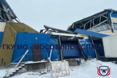 Крыша овощебазы дважды обрушилась под толщей снега в Подмосковье