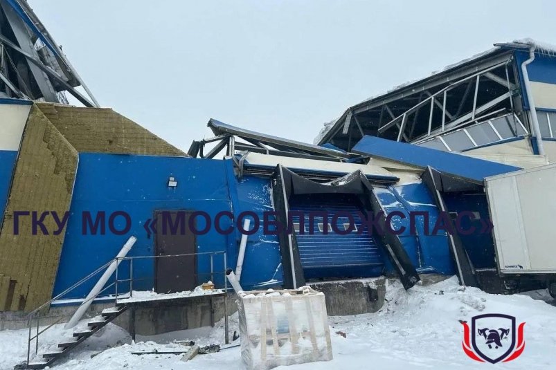 Крыша овощебазы дважды обрушилась под толщей снега в Подмосковье. Фото: Telegram / ГКУ МО "Мособлпожспас"