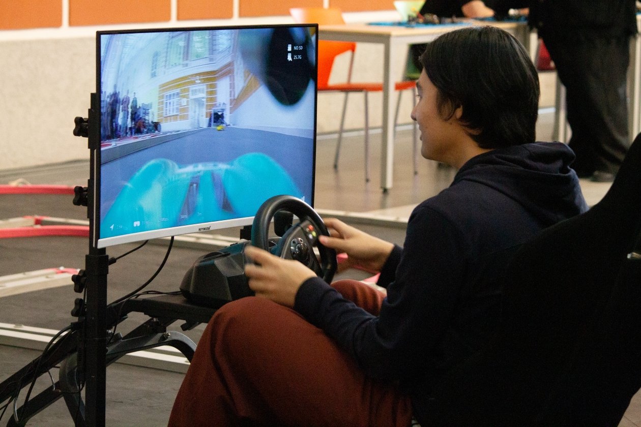 Центральный атриум НИУ ВШЭ превратился в живое технологическое пространство. Гости фестиваля могли не только наблюдать, но и управлять дронами, собирать их в симуляторах, проходить испытания "ТехноГТО", участвовать в гонках и даже попробовать себя в роли операторов боевых беспилотников. Впервые в стенах ВШЭ была собрана полная экосистема беспилотных технологий от научных прототипов и образовательных платформ до систем, применяемых в современных условиях.