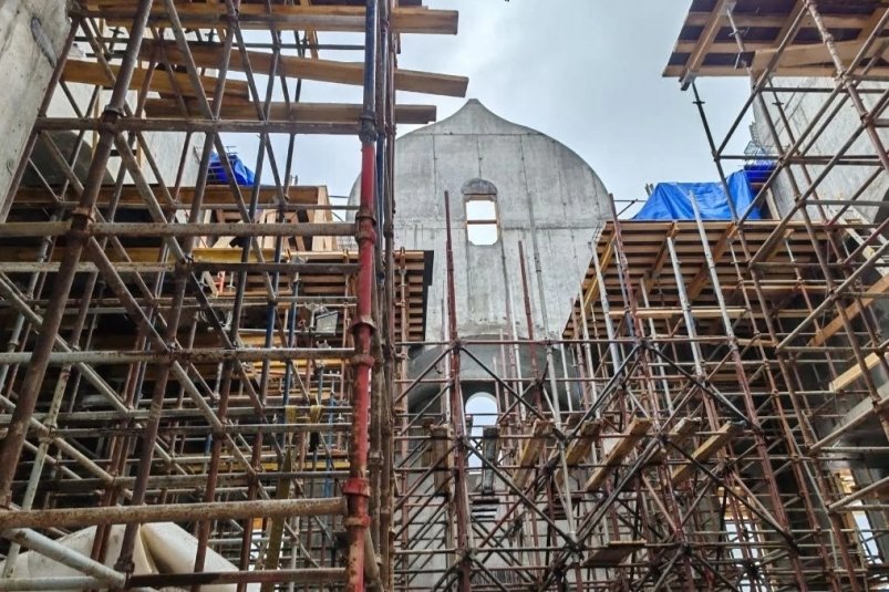 В храме установлены конхи над алтарём, а также завершены своды над входными группами. На этом этапе строители приступили к монтажу опалубки под паруса, после чего планируется установка опалубки под основные части сводов. Скоро начнется первый этап заливки конструкций.