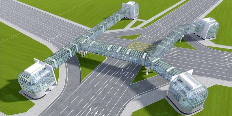 Многосекционный пешеходный переход возводят на пересечении трех крупных магистралей — Коровинского шоссе, улиц Талдомской и 800-летия Москвы.