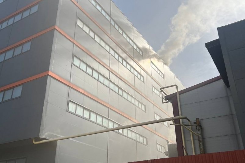 Как уточняется, площадь пожара достигла около 1200 квадратных метров. Сейчас на месте работают пожарные.