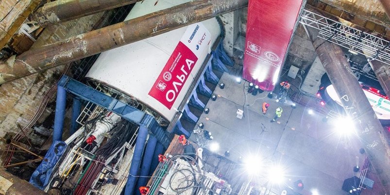 Чтобы справиться с задачей, длину щита "Ольга", задействованного в левом перегонном тоннеле, сократили со 106 до 70 метров. Машину разделили на части и поэтапно опускали в котлован по мере продвижения. Внутри площадки комплекс двигался не по прямой, а изгибаясь вдоль стенок.