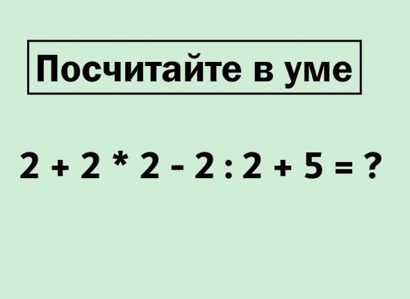 Удалось ли вам уложиться в 40 секунд и получить правильный результат? Если да — вы молодец и можете похвастаться своей математической грамотностью! Если нет — не расстраивайтесь. Эта задачка отлично тренирует ум и напоминает о важности простых правил.