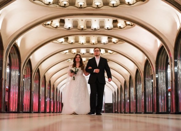 В числе 100 пар, сыгравших свадьбу на "Маяковской", есть и сотрудники московского транспортного комплекса.
