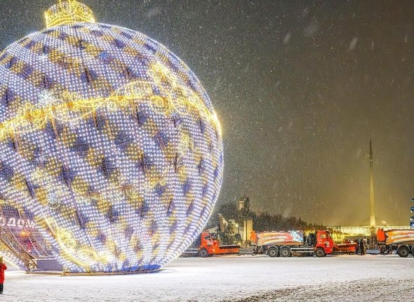 Москва готовится к Новому году: на Поклонной горе появился елочный шар