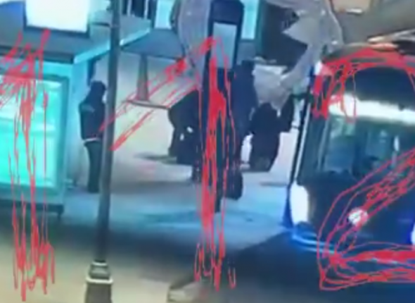 На кадрах видно остановку в темное время суток. Вокруг стоят несколько человек, часть из них переговаривается на повышенных тонах. Судя по видео, обстановка остается напряженной. Видно и то, как лежащего на земле человека избивают ногами.