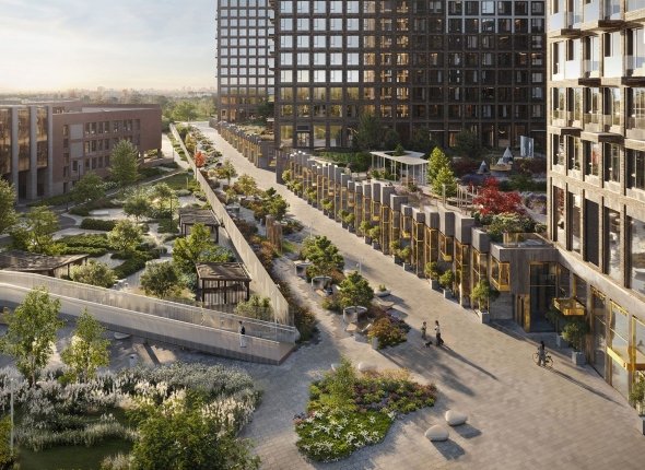 Несмотря на то, что парк является частью элитного жилого комплекса, доступ на его территорию будет открыт для всех горожан. В одном из стилобатов разместятся коммерческие помещения.