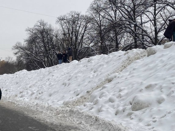 Как отмечается, снежная масса начала расти после активной уборки улиц. В результате на ограниченном участке снова формируется высокая насыпь, заметная издалека и частично меняющая привычную пешеходную и транспортную схему в районе.