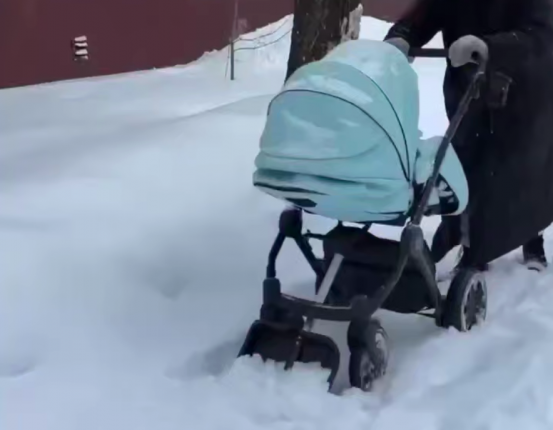 На опубликованных кадрах женщина гуляет с маленьким ребенком и одновременно с этим расчищает дорожку у дома. Она ловко справляется с уборкой снега. Для этого москвичка поместила складную лопату в нижнюю часть коляски. Таким образом, из подручных средств получился своеобразный "ковш" для снега. Такая необычная снегоуборочная "машина" привлекла внимание очевидцев.