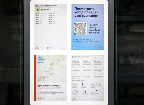 В самих вагонах есть плакаты с правилами проезда. Над текстом для наглядности расположили картинки в знакомом стиле транспорта Москвы. Также маршрутные указатели присутствуют и на стеклах трамваев.