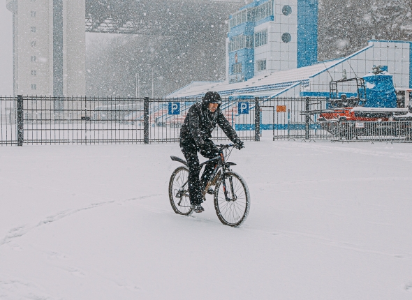 Один из столичных автомобилистов снял на видео, как велосипедист ехал по трассе, несмотря на сильный снегопад и метель. Об этом сообщает Telegram-канал (18+) "Москва 24".