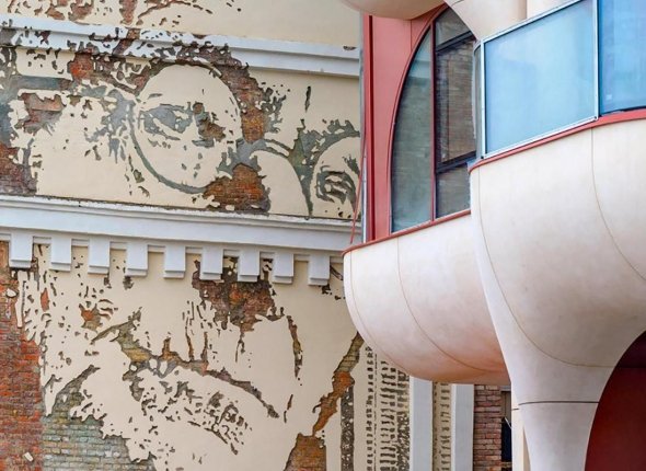 Изображение создал португальский автор Алешандре Фарту, известный под псевдонимом Vhils. Оно появилось на фасаде бывшего общежития фабрики "Московский шелк" еще в 2008 году и со временем стало узнаваемой городской достопримечательностью. После обновления панно станет частью нового жилого пространства, которое формируется на месте бывшей промышленной территории.