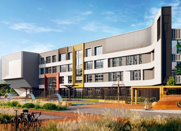 Комплекс строится на земельном участке № 1/3 квартала 191 в новом жилом районе и включает школу на 1100 учеников и детский сад на 300 мест. Образовательное здание площадью почти 25 тысяч кв. метров осностят как универсальными, так и специализированными учебными кабинетами, лабораториями и просторными залами для мероприятий. Внешнее пространство комплекса украсят уличный кинотеатр и открытые зоны для отдыха и общения, с общей площадью уличного кинотеатра в 67,5 кв. метра.