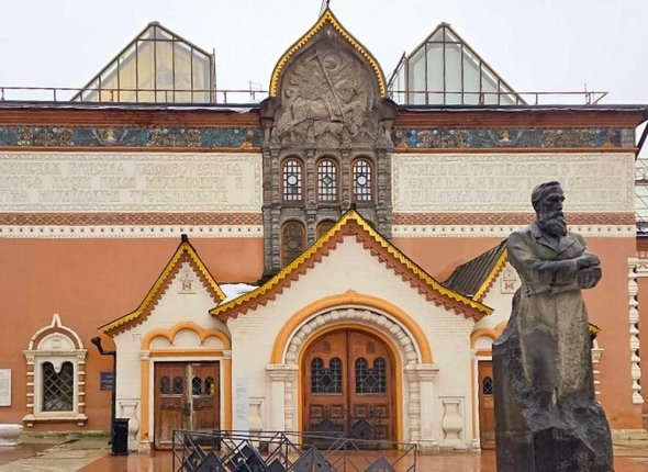 История этого здания берет начало в 1851-м, когда оно перешло во владение купеческой династии Третьяковых. Привычный сегодня облик фасада, стилизованного под древнерусский терем, сооружен в 1904-м по чертежам зодчего Василия Башкирова, за основу которых взяли эскизы Виктора Васнецова.