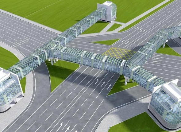 Многосекционный пешеходный переход возводят на пересечении трех крупных магистралей — Коровинского шоссе, улиц Талдомской и 800-летия Москвы.