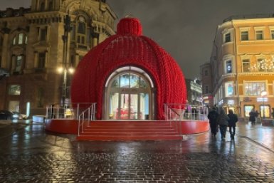 Огромный вязаный шар украсил Москву к Новому году